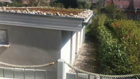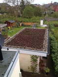 Das Dach des Anbaus haben wir im letzten Jahr erneuert. Und endlich ist es soweit: Das Dach wurde begrünt. Sieht gleich viel besser! Vor allem, wenn man auf der Terrasse sitzt.